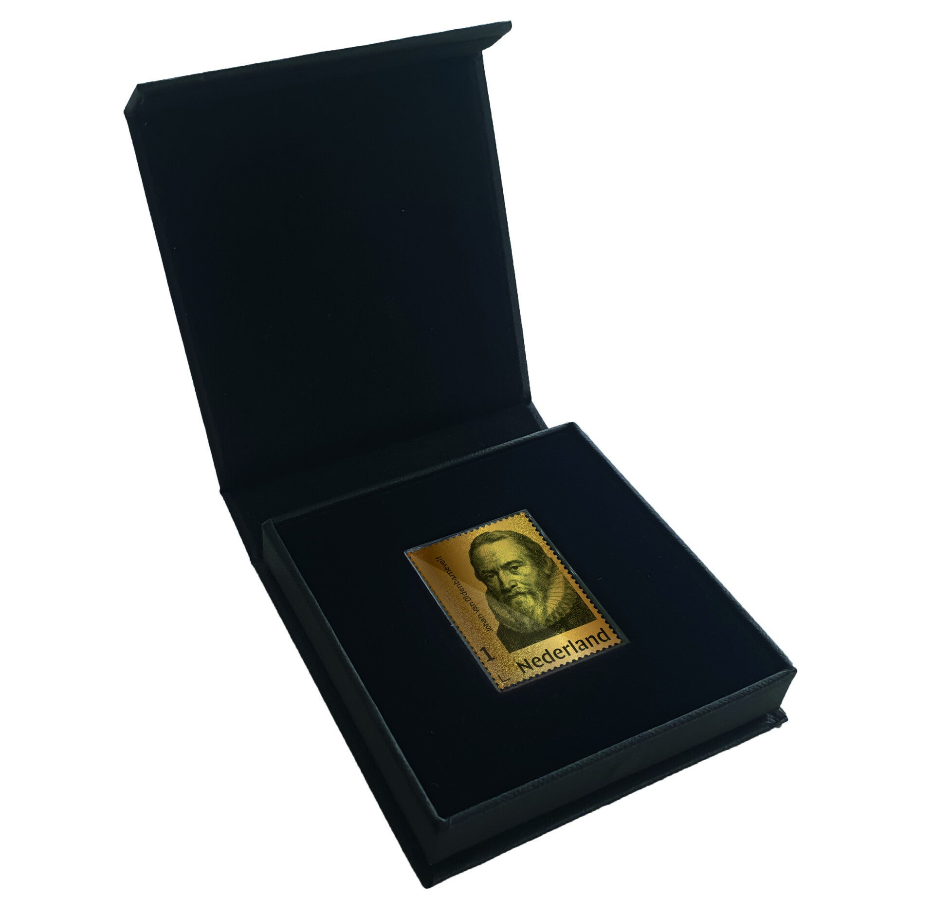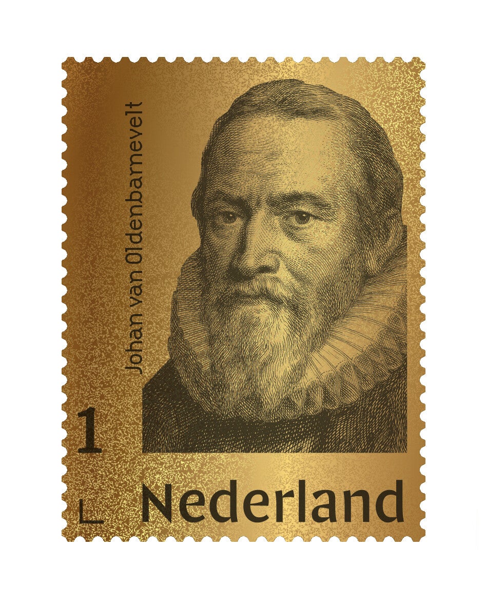 Deze postzegel is gemaakt van 24-karaats goud en is uitgegeven ter gelegenheid van het feit dat het 400 jaar geleden was dat Hugo de Groot in een boekenkist wist te ontsnappen uit Slot Loevestein. Johan van Oldenbarnevelt was een tijdgenoot van Hugo de Groot. Deze postzegel is uitgegeven door PostNL en de oplage is slechts 1500 exemplaren. Deze bijzondere gouden postzegel wordt geleverd in een luxe cadeaubox.